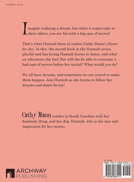 Imagine realizing a dream, but when it comes time to show others, you are hit with a big case of nerves! That's what Hannah faces in author Cathy Mann's Dance for Joy. In this, the second book in the Hannah series, playful and fun-loving Hannah learns to dance, and what an adventure she has! But will she be able to overcome a bad case of nerves before her recital? What would you do? We all have dreams, and sometimes we are scared to make them happen. Join Hannah as she learns to follow her dreams and dance for joy!
