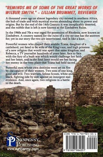 "Reminds me of some of the great works of Wilbur Smith." - Lillian Brummet, Reviewer A thousand years ago an almost legendary city existed in southern Africa, the hub of trade and with mystical stories abounding about its power and origins. But by the end of the 14th Century it was inexplicably deserted, and the rubble that is left is now known as the Zimbabwe Ruins. In the 1960s and 70s a war raged for possession of Rhodesia, now known as Zimbabwe. A country named for the ruins of a city no-one has the answers for; yet in our story the two are intertwined, tied in like a knot. Powerful women who shaped their worlds: Tcana, daughter of a cattleherd, yet fated to be wife of the King's son, and high priestess of a new religion that would tear apart that same kingdom; and Rebecca, a TV journalist hundreds of years later, face to face with the fury of a bush war which would challenge her faith and her heart, and in the final hour would see her facing her enemy in the very place that Tcana had held sacred. Powerful men whose own destinies were set on fire by the catalyst of their women. Two sons of one king, good and evil. Two warriers, Selous Scouts, white and black, fighting side by side against an insurgent malevolence. And, once again, two religions in a battle to the death.