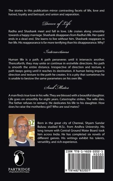 The stories in this publication mirror contrasting facets of life, love and hatred, loyalty and betrayal, and union and separation. DANCE OF LIFE Radha and Shashank meet and fall in love. Life cruises along smoothly towards a happy marriage. Shashank disappears from Radha's life. Her quest ends in a dead end. She learns to live without him. Shashank reappears in her life. His reappearance is far more terrifying than his disappearance. Why? INTERSECTIONS Human life is a path. A path perseveres until it intersects another. Thenceforth, they may unite or continue in erstwhile directions. No path is smooth the entire distance. Irrespective of direction and texture, a path keeps going until it reaches its destination. A human being imparts direction and texture to the path he creates. It is a pity that sometimes he is unable to bestow the same parameters on his own life. SOUL MATES A man finds true love in his wife. They are blessed with a beautiful daughter. Life goes on smoothly for eight years. Catastrophe strikes. The wife dies. The father refuses to remarry. He dedicates his life to his daughter. How does he raise the motherless girl? Who are soul mates?I