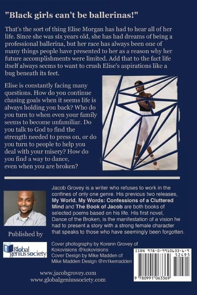 Passionately written by Jacob Grovey, 'Dance of the Broken' tells the poignant and inspirational story of a young black girl who dreams of being a ballerina, despite society's opinion that she's cut from the wrong cloth. Elise's story is a microcosm of the adversity and negative messages that plague the minds of millions of young girls; leaving them with the belief that their dreams are out of reach. But as Grovey proves through his narrative, every young woman is a powerhouse of potential, beauty and success.