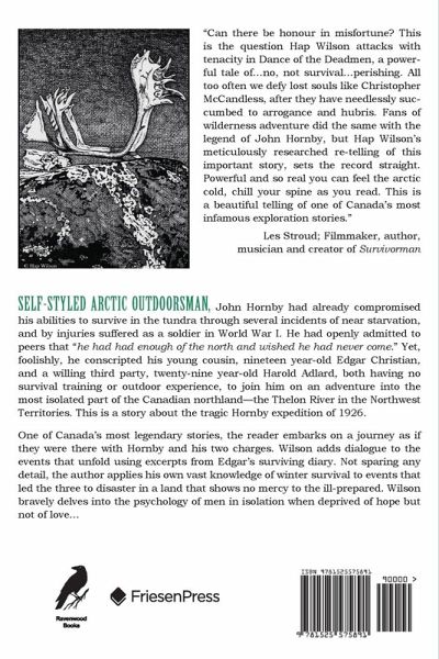 Self-styled arctic outdoorsman, John Hornby had already compromised his abilities to survive in the tundra through several incidents of near starvation, and by injuries suffered as a soldier in World War I. He had openly admitted to peers that "he had had enough of the north and wished he had never come". Yet, foolishly, he conscripted his young cousin, nineteen year-old Edgar Christian, and a willing third party, twenty-nine year-old Harold Adlard, both having no survival training or outdoor experience, to join him on an adventure into the most isolated part of the Canadian northland - the Thelon River in the Northwest Territories. This is a story about the tragic Hornby expedition of 1926. One of Canada's most legendary stories, the reader embarks on a journey as if they were there with Hornby and his two charges. Wilson adds dialogue to the events that unfold using excerpts from Edgar's surviving diary. Not sparing any detail, the author applies his own vast knowledge of winter survival to events that led the three to disaster in a land that shows no mercy to the ill-prepared. Wilson bravely delves into the psychology of men in isolation when deprived of hope but not of love.