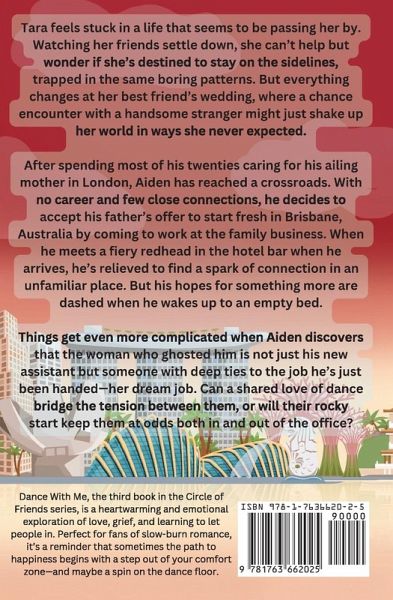 Tara feels stuck in a life that seems to be passing her by. Watching her friends settle down, she can't help but wonder if she's destined to stay on the sidelines, trapped in the same boring patterns. But everything changes at her best friend's wedding, where a chance encounter with a handsome stranger might just shake up her world in ways she never expected. After spending most of his twenties caring for his ailing mother in London, Aiden has reached a crossroads. With no career and few close connections, he decides to accept his father's offer to start fresh in Brisbane, Australia by coming to work at the family business. When he meets a fiery redhead in the hotel bar when he arrives, he's relieved to find a spark of connection in an unfamiliar place. But his hopes for something more are dashed when he wakes up to an empty bed. Things get even more complicated when Aiden discovers that the woman who ghosted him is not just his new assistant but someone with deep ties to the job he's just been handed-her dream job. Can a shared love of dance bridge the tension between them, or will their rocky start keep them at odds both in and out of the office? Dance With Me, the third book in the Circle of Friends series, is a heartwarming and emotional exploration of love, grief, and learning to let people in. Perfect for fans of slow-burn romance, it's a reminder that sometimes the path to happiness begins with a step out of your comfort zone-and maybe a spin on the dance floor.