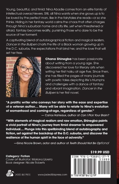 Young, beautiful, and timid: Nina Abadie comes from an elite family of intellectual over-achievers. Still, all Nina wants when she grows up is to be loved by the perfect man, like in the fairytales she reads-or so she thinks. Hiding in her fantasy world calms the chaos that often charges through Nina's suburban home and city life, yet when threatened or afraid, fantasy becomes reality, punishing those who dare to be the source of her torment. A captivating blend of autobiographical fiction and magical realism, Dancer in the Bullpen charts the life of a Black woman growing up in the D.C. suburbs, the expectations that bind her, and the love that will set her free.