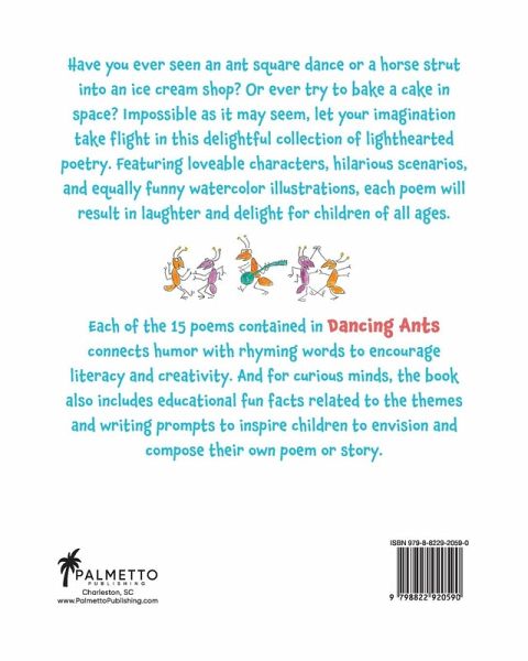 Sparking childhood joy and imagination through poetry Published poet and author, Lizzie B. Lynn has fulfilled a dream of writing a collection of funny rhyming poems for kids in her second book, Dancing Ants and Other Silly Poems for Kids. Maintaining the belief that rhyming accelerates a child's interest in reading, writing, Lynn introduces amusing characters and situations accompanied by humorous watercolor illustrations that will bring laughter and joy to all who read it. Dancing Ants is just one of the 15 delightful poems featured in this charming book. From a group of ants dancing their way into a picnic and an ice-cream stealing horse to a gladiator who'd rather sleep than fight, children will giggle out loud with each preposterous scene. Sparking imagination and wonder, the book encourages young readers to stay curious. And the question parents will undoubtedly hear the most will be, "Can we read it again?". Additionally, the book includes fun facts and writing prompts as a fun educational perk.