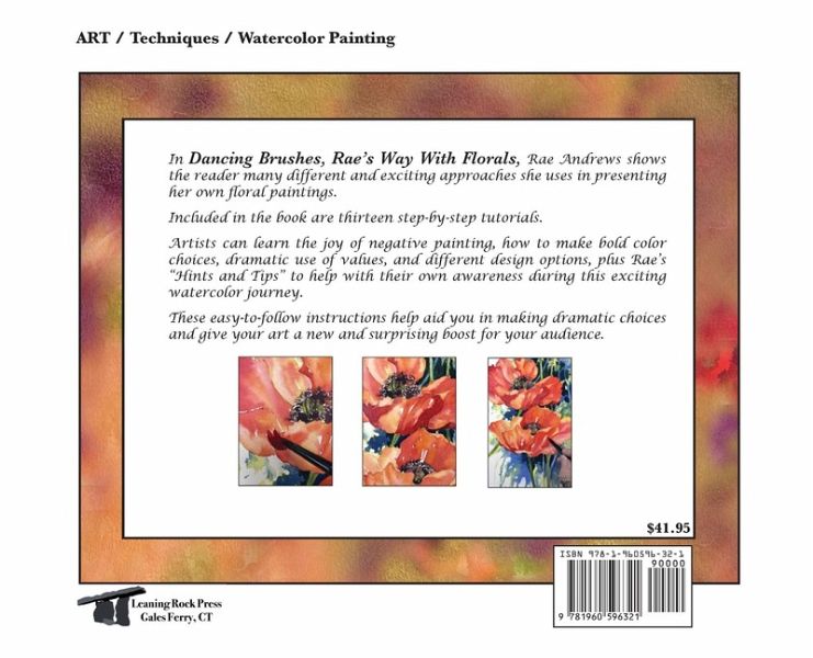 As a watercolor painting artist and instructor for over 50 years, Rae Andrews has had the privilege of helping students from all over the world grow in their personal painting journeys. Many are rushing to 'find their personal style' before they have learned the basics of drawing and color mixing. Rae's advice is to slow down. Bake the cake first, then cover it with icing. Drawing is as essential to art, as is knowing colors and what happens when they are mixed together. This is ESPECIALLY paramount within the realm of the watercolor medium. Knowledge can only make any artist more confident and intuitive in the execution of their paintings. Practice and more practice will help alleviate the failures or 'stinkers' as Rae calls them. Watercolor is such an elusive and spontaneous medium. At times it is very frustrating, but oh so rewarding, when it all flows into place for us. This medium has very particular and exciting properties and is very different from other mediums. Many 'ah ha' moments await you on this magical journey. Savor them, take notes, and let's travel this road together. This book is for intermediate to advanced artists and demonstrates the different approaches Rae has found successful on her journey of discovery, using FLORALS as her subjects. She demonstrates many of the techniques and strategies that she uses when painting floral renditions, from semi-abstract or very loose to more refined and controlled approaches. Sometimes, all are used in one painting. Rae is a colorist and loves to surprise her viewers with her dramatic choices of contrasts, both using color and values. After all, Rae feels that being an individual and standing out in a crowd is what any artist wants. Finally, she hopes you enjoy these FLORAL exercises and feel inspired to strive and forge forward, gently stepping out of your comfort zone and daring to be different. Above all, have fun!