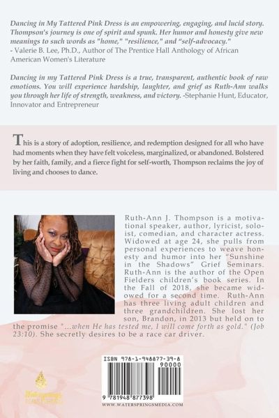 This is a story of adoption, resilience, and redemption designed for all who have had moments when they have felt voiceless, marginalized or abandoned. Bolstered by her faith, family and a fierce fight for self-worth, Thompson reclaims the joy of living and chooses to dance. Dancing in My Tattered Pink Dress is an empowering, engaging and lucid story. Thompson’s journey is one of spirit and spunk. Her humor and honesty give new meanings to such words as "home," "resilience," and "self-advocacy." -- Valerie B. Lee, Ph.D. Author of The Prentice Hall Anthology of African American Women’s Literature Executive Director, Womanist Readers Dancing in My Tattered Pink Dress is a true, transparent, authentic book of raw emotions. You will experience hardship, laughter, and grief as Ruth-Ann walks you through her life of strength, weakness, and victory. -Stephanie Hunt Educator, Innovator and Entrepreneur