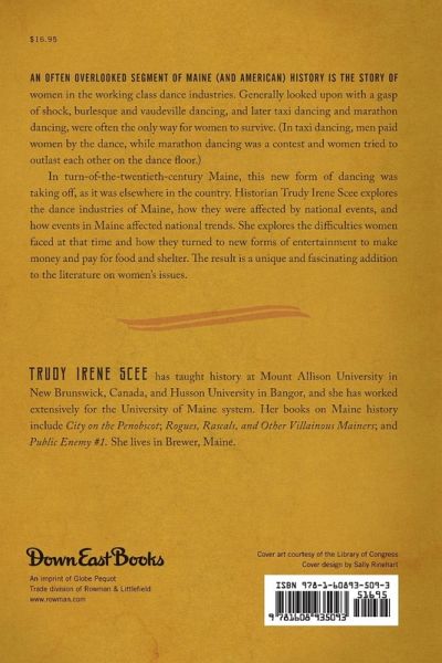An often overlooked segment of Maine (and American) history is the story of women in the working class dance industries. Generally looked upon with a gasp of shock, burlesque and vaudeville dancing, and later taxi dancing and marathon dancing, were often the only way for women to survive (In taxi dancing, men paid women by the dance; while marathon dancing was a contest and women tried to outlast each other on the dance floor.) In turn-of-the-20th-century Maine, this new form of dancing was taking off, as it was elsewhere in the country. Historian Trudy Irene Scee explores the dance industries of Maine, how they were effected by national events, and how events in Maine effected national trends. She explores the difficulties women faced at that time and how they turned to new forms of entertainment to make money and pay for food and shelter. The focus of the book centers on the 1910s through the 1970s, but extends back into the 1800s, largely exploring the dance halls of the nineteenth century (be they saloons with hurdy-gurdy girls and the like, or dance halls with women performing the early forms of taxi- and belly dancing), and includes a chapter on belly dancing and other forms of dance entertainment in Maine in the 1980s to early 2000s. The newest form of dance—striptease dancing—is not be examined specifically, but is discussed as it pertains to the other dance forms. The book forms a unique look at one segment of Maine history and is a terrific addition to the literature on women’s issues.