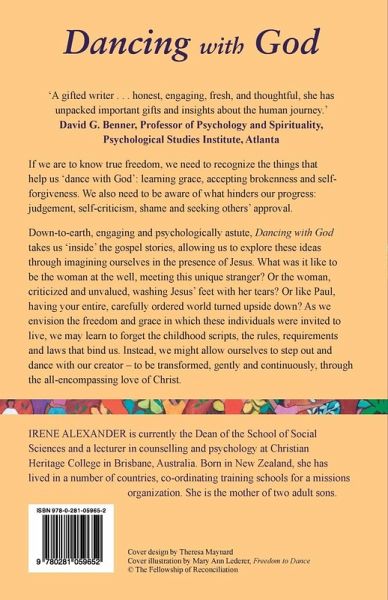 Down-to-earth, engaging and psychologically astute, Dancing with God takes us 'inside' the gospel stories, so we might explore these ideas through imagining ourselves to be in the presence of Jesus. What was it like to be the woman at the well meeting this unique stranger? Or the woman, washing Jesus' feet with her tears, criticized and unvalued? Or Paul, having your entire, carefully-ordered world turned upside down? As we envision the freedom and grace in which these individuals were invited to live, we may learn to forget the childhood scripts, the rules, requirements and laws that bind us, and allow ourselves instead to step out and dance with our creator - to be transformed, gently and continuously, through the all-encompassing love of Christ.