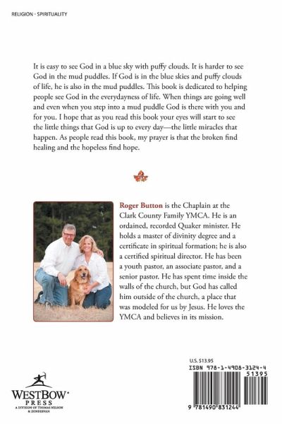 It is easy to see God in a blue sky with puffy clouds. It is harder to see God in the mud puddles. If God is in the blue skies and puffy clouds of life, he is also in the mud puddles. This book is dedicated to helping people see God in the everydayness of life. When things are going well and even when you step into a mud puddle God is there with you and for you. I hope that as you read this book your eyes will start to see the little things that God is up to every day—the little miracles that happen. As people read this book, my prayer is that the broken find healing and the hopeless find hope.