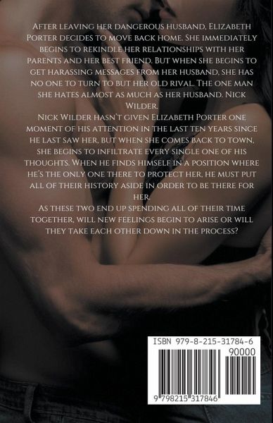 After leaving her dangerous husband, Elizabeth Porter decides to move back home. She immediately begins to rekindle her relationships with her parents and her best friend. But when she begins to get harassing messages from her husband, she has no one to turn to but her old rival. The one man she hates almost as much as her husband. Nick Wilder. Nick Wilder hasn't given Elizabeth Porter one moment of his attention in the last ten years since he last saw her, but when she comes back to town, she begins to infiltrate every single one of his thoughts. When he finds himself in a position where he's the only one there to protect her, he must put all of their history aside in order to be there for her. As these two end up spending all of their time together, will new feelings begin to arise or will they take each other down in the process? Trigger Warning: This book does touch on an emotionally (bordering on physically) abusive marriage between the main character and her ex. There are only two times that it happens presently and the rest is either from memories or her talking about it. I understand that this can be a hard subject for some to read so there is no offense if you won't (or can't) read my novel.
