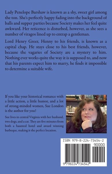 Lady Penelope Barshaw is known as a shy, sweet girl among the ton. She's perfectly happy fading into the background of balls and supper parties because Society makes her feel quite awkward. Her reticence is disturbed, however, as she sees a number of viragos lined up to entrap a gentleman. Lord Henry Greer, Henny to his friends, is known as a capital chap. He stays close to his best friends, however, because the vagaries of Society are a mystery to him. Nothing ever works quite the way it is supposed to, and now that his parents expect him to marry, he finds it impossible to determine a suitable wife.