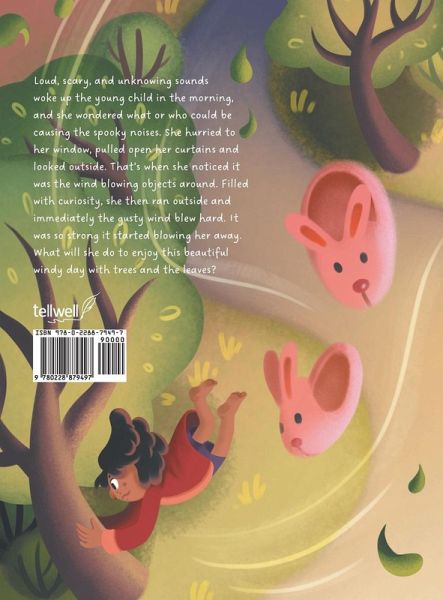 Loud, scary, and unknowing sounds woke up the young child in the morning, and she wondered what or who could be causing the spooky noises. She hurried to her window, pulled open her curtains and looked outside. That's when she noticed it was the wind blowing objects around. Filled with curiosity, she then ran outside and immediately the gusty wind blew hard. It was so strong it started blowing her away. What will she do to enjoy this beautiful windy day with trees and the leaves?
