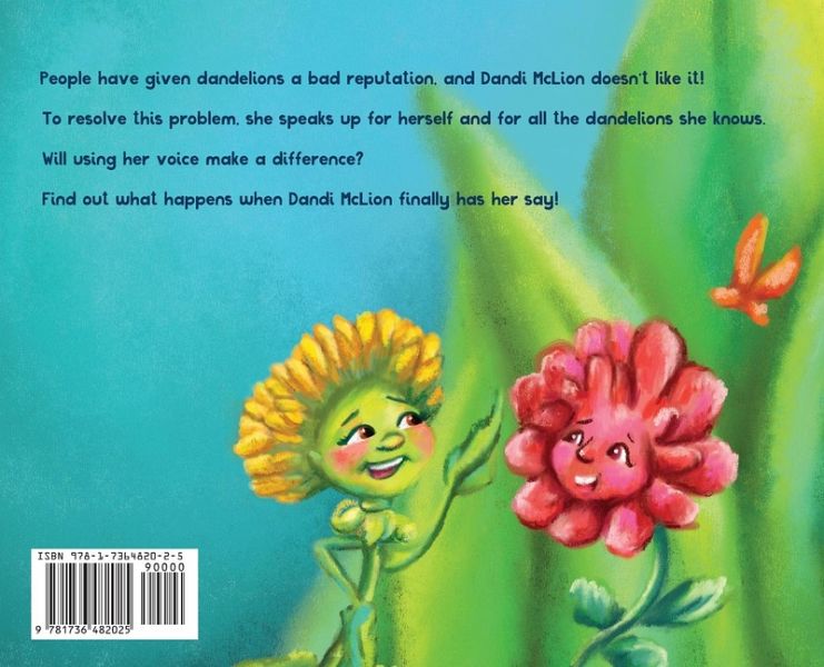 Dandi McLion is a beautiful and proud dandelion. Her golden florets burst into the sky like their own radiant rays of sunshine, and anyone can see that she is adorable! She discovers that people have given dandelions a bad reputation and she doesn't like it! To resolve this problem, she attends the people's town hall meeting, where she shares awesome facts about the importance of dandelions, and why they should be respected like other flowers. Will using her voice make a difference? Find out what happens when Dandi McLion finally has her say! Dandi McLion Has Her Say is a fun and engaging mixture of STEM, Social Emotional Learning and Character Education! It comes complete with a glossary to enhance reading comprehension and increase vocabulary. From this book, readers are sure to learn some pretty important facts about dandelions. (STEM) The book also touches on core components of Social Emotional Learning like empathy, compassion and how to handle big emotions. Furthermore, it demonstrates how one can exercise Civic Responsibility to make a change in their world, a key element of Character Education. Dandi McLion Has Her Say encourages its reader to be courageous. It reminds us that our voice is powerful and that it deserves to be heard.