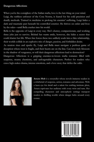 Dangerous Affections When you're the consigliere of the Italian mafia, love is the last thing on your mind. Luigi, the ruthless enforcer of the Cosa Nostra, is feared for his cold precision and deadly methods. Trained in medicine to prolong his enemies' suffering, Luigi hides a dark and traumatic past beneath his controlled exterior. He thrives on order and lives by the rules-until Bella crashes into his world. Bella is the opposite of Luigi in every way. She's clumsy, compassionate, and working three jobs just to survive. Behind her warm smile, however, she hides a secret that could shatter her life. When fate forces these two unlikely souls into a fake relationship, their worlds collide in an explosive mix of danger, passion, and forbidden desire. As tension rises and sparks fly, Luigi and Bella must navigate a perilous game of deception where trust is fragile, and their hearts are on the line. Can love truly blossom in the shadow of vengeance, or will their dangerous affections lead to destruction? Dangerous Affections is a gripping enemies-to-lovers mafia romance filled with suspense, steamy chemistry, and unforgettable characters. Perfect for readers who crave high-stakes drama, intense emotions, and a love story that defies the odds.