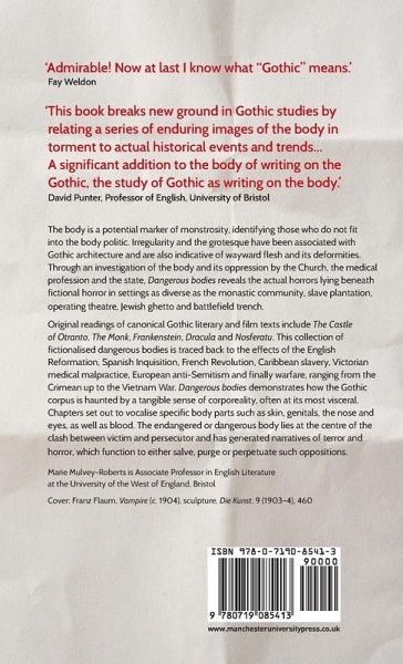 Through an investigation of the body and its oppression by the church, the medical profession and the state, this book reveals the actual horrors lying beneath fictional horror in settings as diverse as the monastic community, slave plantation, operating theatre, Jewish ghetto and battlefield trench. The book provides original readings of canonical Gothic literary and film texts including The Castle of Otranto, The Monk, Frankenstein, Dracula and Nosferatu. This collection of fictionalised dangerous bodies is traced back to the effects of the English Reformation, Spanish Inquisition, French Revolution, Caribbean slavery, Victorian medical malpractice, European anti-Semitism and finally warfare, ranging from the Crimean up to the Vietnam War. The endangered or dangerous body lies at the centre of the clash between victim and persecutor and has generated tales of terror and narratives of horror, which function to either salve, purge or dangerously perpetuate such oppositions. This ground-breaking book will be of interest to academics and students of Gothic studies, gender and film studies and especially to readers interested in the relationship between history and literature.