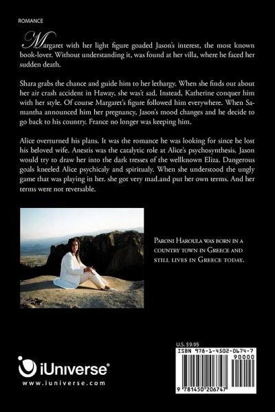 BOOK DESCRIPTION Margaret with her light figure goaded Jason's interest, the most known book-lover. Without understanding it, was found at her villa, where he faced her sudden death. Shara grabs the chance and guide him to her lethargy. When she finds out about her air crash accident in Haway, she was't sad. Instead, Katherine conquer him with her style. Of course Margaret's figure followed him everywhere. When Samantha announced him her pregnancy, Jason's mood changes and he decide to go back to his country. France no longer was keeping him. Alice overturned his plans. It was the romance he was looking for since he lost his beloved wife. Anestis was the catalytic role at Alice's psychosynthesis. Jason would try to draw her into the dark tresses of the wellknown Eliza. Dangerous goals kneeled Alice psychicaly and spiritualy. When she understood the ungly game that was playing in her. she got very mad.and put her own terms. And her terms were not reversable.