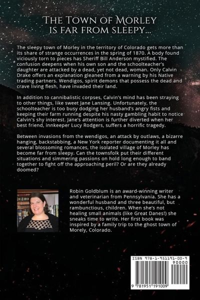 When a viciously mangled corpse is discovered, Jane struggles to keep her students safe and calm. The Apaches blame wendigos, but Calvin has trouble believing his trading partners. A demon who possesses the dead and craves human flesh sounds like a campfire tale. When Jane's daughter is attacked, Calvin offers the sweet schoolteacher an armed escort home from school. Although home is hardly safe, considering Jane's husband is the meanest drunk in town. The hanging of an outlaw exposes a gruesome truth-anyone could become a wendigo. A rider goes out for help but his horse comes back without him. The town of Morely will stand or fall on its own. Shots are fired, secrets are exposed and love is tested. Can the townsfolk band together or will Morley become another ghost town of the West?