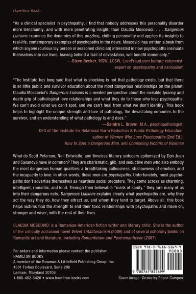 What do Scott Peterson, Neil Entwistle and timeless literary seducers epitomized by Don Juan and Casanova have in common? They are charismatic, glib and seductive men who also embody the most dangerous human qualities: a breathtaking callousness, shallowness of emotion and the incapacity to love. In other words, these men are psychopaths. Unfortunately, most psychopaths don't advertise themselves as heartless social predators. They come across as charming, intelligent, romantic and kind. Through their believable "mask of sanity," they lure many of us into their dangerous nets. Dangerous Liaisons explains clearly what psychopaths are, why they act the way they do, how they attract us and whom they tend to target. Above all, this book helps victims find the strength to end their toxic relationships with psychopaths and move on, stronger and wiser, with the rest of their lives.