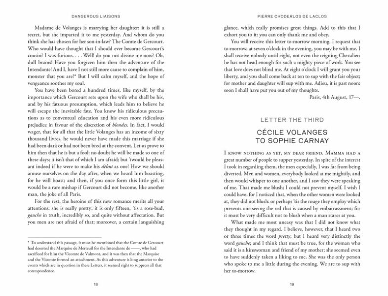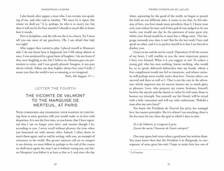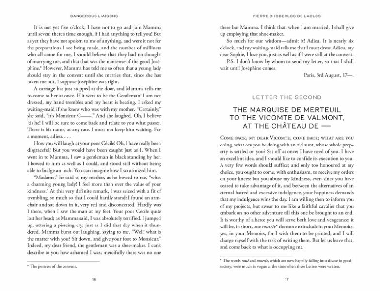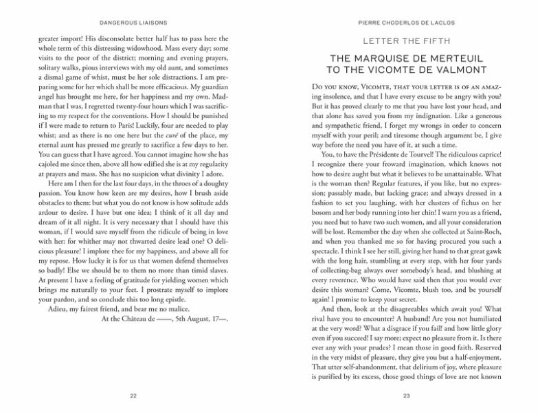 The complex moral ambiguities of seduction and revenge make Dangerous Liaisons one of the most scandalous and controversial novels in European literature. The subject of major film and stage adaptations, the novel's prime movers, the Vicomte de Valmont and the Marquise de Merteuil, form an unholy alliance and turn seduction into a game - a game which they must win.