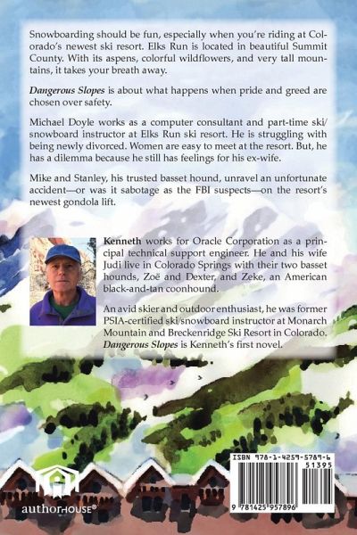 Snowboarding should be fun, especially when you're riding at Colorado's newest ski resort. Elks Run is located in beautiful Summit County. With its aspens, colorful wildflowers, and very tall mountains, it takes your breath away. Dangerous Slopes is about what happens when pride and greed are chosen over safety. Michael Doyle works as a computer consultant and part-time ski/snowboard instructor at Elks Run ski resort. He struggles with being newly divorced. Women are easy to meet at the resort. But, he has a dilemma because he still has feelings for his ex-wife. Mike and Stanley, his trusted basset hound, unravel an unfortunate accident-or was it sabotage by environmentalists as the FBI suspects-on the resort's newest gondola lift.