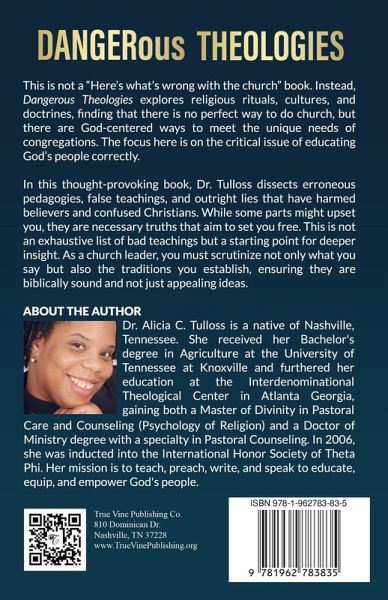 This is not a "Here's what's wrong with the church" book. Instead, Dangerous Theologies explores religious rituals, cultures, and doctrines, finding that there is no perfect way to do church, but there are God-centered ways to meet the unique needs of congregations. The focus here is on the critical issue of educating God's people correctly. In this thought-provoking book, Dr. Tulloss dissects erroneous pedagogies, false teachings, and outright lies that have harmed believers and confused Christians. While some parts might upset you, they are necessary truths that aim to set you free. This is not an exhaustive list of bad teachings but a starting point for deeper insight. As a church leader, you must scrutinize not only what you say but also the traditions you establish, ensuring they are biblically sound and not just appealing ideas. Join Dr. Tulloss in clearing up the half-truths and dispelling the lies that lead to dangerous theologies.