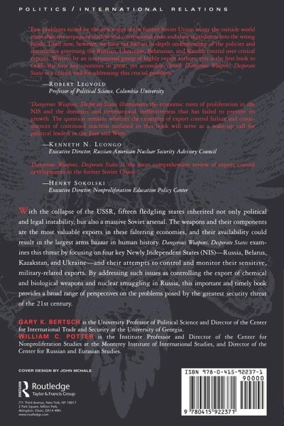 With the collapse of the USSR, fifteen fledgling sates inherited a massive Soviet arsenal, unstable political systems, and desperate economies. A "sell everything" mentality threatens to result in the largest arms bazaar in human history, and this potential "fire sale" includes weapons of mass destruction. This book addresses the challenges the new independent states (NIS) of the former Soviet Union (FSU) face in controlling and monitoring their sensitive, military-related exports.Dangerous Weapons, Desperate States explores the various theoretical approaches that help explain the development of nonproliferation export control systems in the NIS. The contributors, coming from both the FSU states and the US, provide a broad range of perspectives on the problems posed by the threat of proliferation.