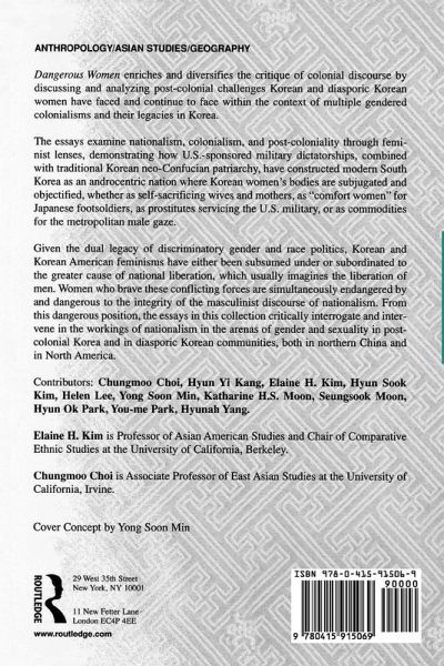 Dangerous Women addresses the themes of Korean nationalism and gender construction, as well as various issues related to the colonialization and decolonialization of the Korean nation. The contributors explore the troubled category of "woman," placing it in the specific context of a marginalized and colonized nation. But Korean women are not merely configured here as metaphors for an emasculated and infantilized "homeland;" they are also shown to be products of a problematic gender construction that originates in Korea, and extends even today to Korean communities beyond Asia. Representations of Korean women still attempt to confine them to the status of either mother or prostitute: Dangerous Women rectifies that construction, offering a feminist intervention that might recuperate womanhood.