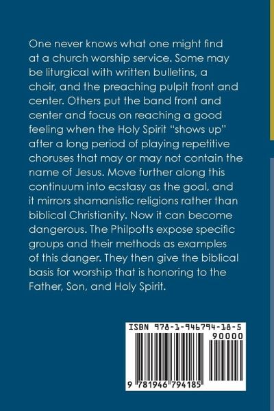 "One never knows what one might find at a church worship service. Some may be structured in traditional liturgical format with written bulletins and a choir singing to a piano or organ, and the preaching pulpit is front and center. Others put the band front and center and focus on reaching a good feeling when the Holy Spirit supposedly "shows up" after a long period of playing repetitive choruses that may or may not contain the name of Jesus. When this second example moves further along on the continuum of spiritual highs into ecstasy as the goal rather than actual worship, it starts to mirror shamanistic religions rather than biblical Christianity and becomes dangerous. The Philpotts present lamentable personal history and expose specific groups and their methods as examples of this danger. They then give the biblical basis for worship that is honoring to the Father, Son, and Holy Spirit"--