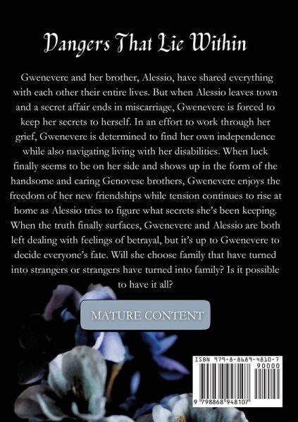 Gwenevere and her brother, Alessio, have shared everything with each other their entire lives. But when Alessio leaves town and a secret affair ends in miscarriage, Gwenevere is forced to keep her secrets to herself. In an effort to work through her grief, Gwenevere is determined to find her own independence while also navigating living with her disabilities. When luck finally seems to be on her side and shows up in the form of the handsome and caring Genovese brothers, Gwenevere enjoys the freedom of her new friendships while tension continues to rise at home as Alessio tries to figure out what secrets she's been keeping. When the truth finally surfaces, Gwenevere and Alessio are both left dealing with feelings of betrayal, but it's up to Gwenevere to decide everyone's fate. Will she choose family that have turned into strangers or strangers have turned into family? Is it possible to have it all?
