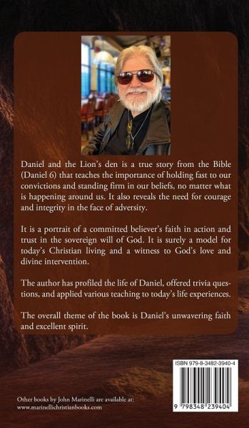 Daniel and the Lion's den is a true story from the Bible (Daniel 6) that teaches the importance of holding fast to our convictions and standing firm in our beliefs, no matter what is happening around us. It also reveals the need for courage and integrity in the face of adversity.It is a portrait of a committed believer's faith in action and trust in the sovereign will of God. It is surely a model for today's Christian living and a witness to God's love and divine intervention. The author has profiled the life of Daniel, offered trivia questions on his book and applied various teaching to today's life experiences.