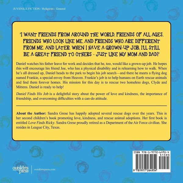 WE ARE ALL DIFFERENT AND AWESOME IN OUR OWN WAY! BE HAPPY TO BE YOU! This is a delightful story about Daniel's search for his grown-up job. Daniel wants to be just like his mom and dad. He hopes his job will also help him encourage his friend Joe who has a physical disability and is in a wheelchair. As he thinks about the perfect job, Daniel encounters two homeless dogs, Clyde and Mittens. Clyde is injured because he tries to protect Mittens from dogs who constantly bully her by making fun of her four white paws. Daniel unexpectedly gets assistance from Frankie, a superpower dog from Heaven. Frankie's job in Heaven is to help humans on Earth rescue animals and find them forever homes. Daniel and Frankie rescue Clyde and Mittens while also encouraging Joe to walk. In reading this book, parents and children alike will observe how the power of love and kindness, embodied in friendship, helps Daniel, Joe, Clyde, and Mittens overcome difficulties. This tender story contains examples to help children understand the importance of not giving up, facing challenges, having pride, and believing in yourself. It shows favorable results in many ways. Joe and Clyde meet physical challenges by having a positive attitude. Mittens' paws "save the day" by helping Clyde when he is injured, and Mittens soon realizes that she is awesome, just as she is. Daniel learns the impact of friendship. Frankie returns to Heaven, having helped two boys find joy and two little dogs find a forever home. This book also demonstrates the seriousness of bullying and the emotional pain it causes. Most importantly, it advises all of us: DON'T BE A BULLY. BE A FRIEND!