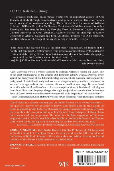 The book of Daniel is a literary rich and complex story known for its apocalyptic style. Written in both Hebrew and Aramaic, the book begins with stories of Daniel and three Jewish young men Hananiah (Shadrach), Mishael (Meshach), and Azariah (Abednego) who are exiles among the remnant from Judea in Babylon in sixth century b.c.e. It ends with Daniel's visions and dreams about the Jewish community that offer comfort and encouragement as they endure persecution and hope for deliverance into God's kingdom. Newsom's commentary offers a fresh study of Daniel in its historical context. Newsom further analyzes Daniel from literary and theological perspectives. With her expert commentary, Newsom's study will be the definitive commentary on Daniel for many years to come. The Old Testament Library provides fresh and authoritative treatments of important aspects of Old Testament study through commentaries and general surveys. The contributors are scholars of international standing. The editorial board consists of William P. Brown, Professor of Old Testament, Columbia Theological Seminary in Decatur, Georgia; Carol A. Newsom, Charles Howard Candler Professor of Old Testament, Candler School of Theology at Emory University in Atlanta, Georgia; and Brent A. Strawn, Professor of Old Testament, Candler School of Theology at Emory University in Atlanta, Georgia.