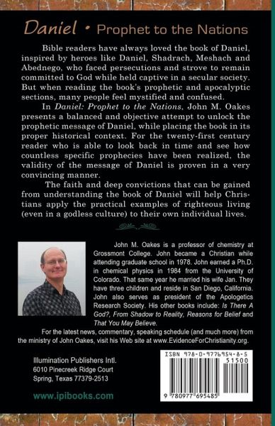 Bible readers have always loved the book of Daniel, inspired by heroes like Daniel, Shadrach, Meshach and Abednego, who faced persecutions and strove to remain committed to God while held captive in a secular society. But when reading the Book's prophetic and apocalyptic sections, many people feel mystified and confused. In Daniel: Prophet to the Nations, John M. Oakes presents a balanced and objective attempt to unlock the prophetic message of Daniel, while placing the Book in its proper historical context. For the twenty-first century reader who is able to look back in time and see how countless specific prophecies have been realized, the validity of the message of Daniel is proven in a very convincing manner. The faith and deep convictions that can be gained from understanding the book of Daniel will help Christians apply the practical examples of righteous living (even in a godless culture) to their own individual lives.