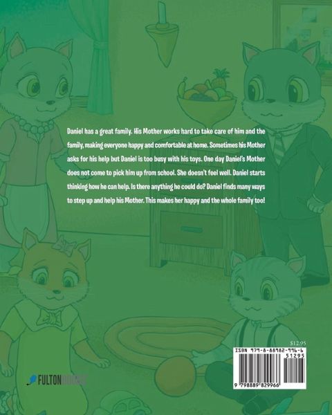 Daniel has a great family. His Mother works hard to take care of him and the family, making everyone happy and comfortable at home. Sometimes his Mother asks for his help but Daniel is too busy with his toys. One day Daniel's Mother does not come to pick him up from school. She doesn't feel well. Daniel starts thinking how he can help. Is there anything he could do? Daniel finds many ways to step up and help his Mother. This makes her happy and the whole family too!