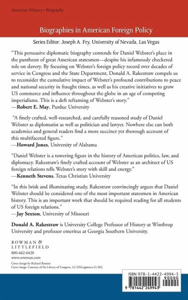 Donald A. Rakestraw focuses on Daniel Webster's critical diplomatic efforts. His domestic resumé garnered him the title "Defender of the Constitution," while his adroit handling of his signature accomplishment with Lord Ashburton earned him the additional title of "Defender of the Peace."