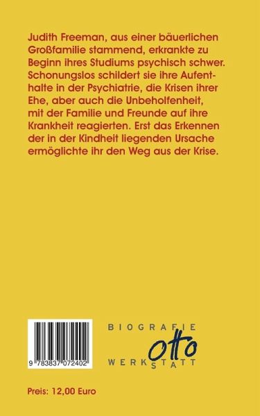 Judith Freeman, aus einer bäuerlichen Großfamilie stammend, erkrankt zu Beginn ihres Studiums psychisch schwer und kommt in die Psychiatrie.Gemäß ihrer Devise "Ohne Therapie gibt es keine Heilung" kämpft sie sich durchs Leben, bis sie endlich die in der Kindheit liegende Ursache ihrer Erkrankung erkennt und genesen kann. Eine authentische und hoffnungsvolle Lebensgeschichte, die unter die Haut geht.