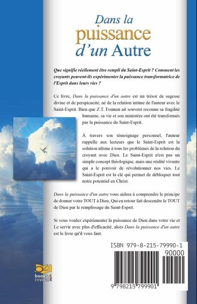 Que signifie réellement être rempli du Saint-Esprit ? Comment les croyants peuvent-ils expérimenter la puissance transformatrice de l'Esprit dans leurs vies ? Ce livre, Dans la puissance d'un autre est un trésor de sagesse divine et de perspicacité, né de la relation intime de l'auteur avec le Saint-Esprit. Bien que Z.T. Fomum ait souvent reconnu sa fragilité humaine, sa vie et son ministère ont été transformés par la puissance du Saint-Esprit. À travers son témoignage personnel, l'auteur rappelle aux lecteurs que le Saint-Esprit est la solution ultime à tous les problèmes de la relation du croyant avec Dieu. Le Saint-Esprit n'est pas un simple concept théologique, mais une réalité vivante qui a le pouvoir de révolutionner nos vies. Le Saint-Esprit est la clé qui permet de débloquer tout notre potentiel en Christ. Dans la puissance d'un autre vous aidera à comprendre le principe de donner votre TOUT à Dieu, Qui en retour fait descendre le TOUT de Dieu par le remplissage du Saint-Esprit. Si vous voulez expérimenter la puissance de Dieu dans votre vie et Le servir avec plus d'efficacité, alors Dans la puissance d'un autre est le livre qu'il vous faut.