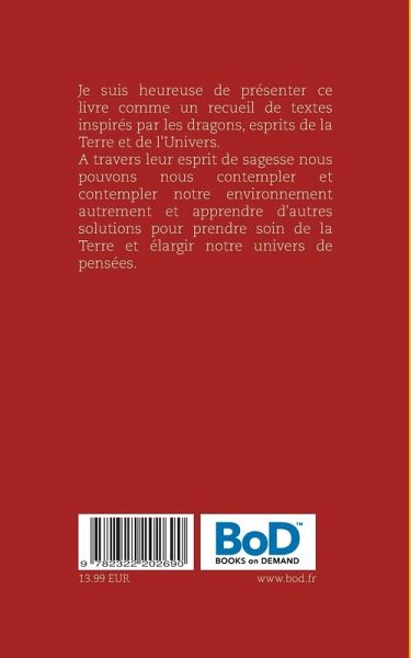 Je suis heureuse de présenter ce livre comme un recueil de textes inspirés par les dragons, esprits de la Terre et de l'Univers. A travers leur esprit de sagesse nous pouvons nous contempler et contempler notre environnement autrement et apprendre d'autres solutions pour prendre soin de la Terre et élargir notre univers de pensées.