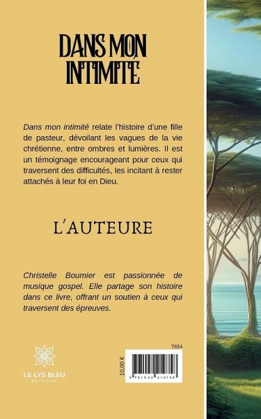 Dans mon intimité relate l'histoire d'une fille de pasteur, dévoilant les vagues de la vie chrétienne, entre ombres et lumières. Il est un témoignage encourageant pour ceux qui traversent des difficultés, les incitant à rester attachés à leur foi en Dieu.