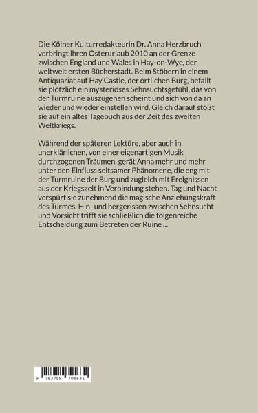 Die Kölner Kulturredakteurin Dr. Anna Herzbruch verbringt ihren Osterurlaub 2010 an der Grenze zwischen England und Wales in Hay-on-Wye, der weltweit ersten Bücherstadt. Beim Stöbern in einem Antiquariat auf Hay Castle, der örtlichen Burg, befällt sie plötzlich ein mysteriöses Sehnsuchtsgefühl, das von der Turmruine auszugehen scheint und sich von da an wieder und wieder einstellen wird. Gleich darauf stößt sie auf ein altes Tagebuch aus der Zeit des zweiten Weltkriegs. Während der späteren Lektüre, aber auch in unerklärlichen, von einer eigenartigen Musik durchzogenen Träumen, gerät Anna mehr und mehr unter den Einfluss seltsamer Phänomene, die eng mit der Turmruine der Burg und zugleich mit Ereignissen aus der Kriegszeit in Verbindung stehen. Tag und Nacht verspürt sie zunehmend die magische Anziehungskraft des Turmes. Hin- und hergerissen zwischen Sehnsucht und Vorsicht trifft sie schließlich die folgenreiche Entscheidung zum Betreten der Ruine ...