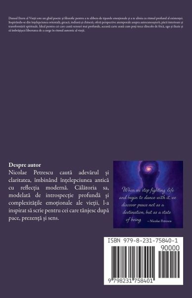 About the Author Nicolae Petrescu is not just an author - he is a seeker, a listener, and a bridge between ancient wisdom and modern reality. His journey began not in a quiet temple or under a spotlight, but through years of internal conflict, emotional pressure, and deep reflection. For a long time, Nicolae navigated the demands of everyday life while feeling the pull of something greater - a rhythm beneath the surface, a deeper truth waiting to be heard. Through struggle, he discovered stillness. Through disillusionment, he found meaning. And through observing the world's obsession with power, ego, and noise, he became devoted to helping others rediscover peace, clarity, and conscious leadership. His books, The Eternal Dance of Life and The Rarest Commodity is Leadership Without Ego, are invitations to pause, reflect, and awaken. They are not meant to instruct from a pedestal, but to walk beside the reader, like a companion on the path of personal transformation. Nicolae writes for those who feel misplaced in a world too fast, too loud, too superficial. For those who have asked silently: Is there more than this? His answer is simple: Yes. And it's already within you. Whether you are searching for inner peace, authentic leadership, or the courage to let go of old cycles, Nicolae's work is a space to breathe - a return to what really matters. "Let's walk this path together."