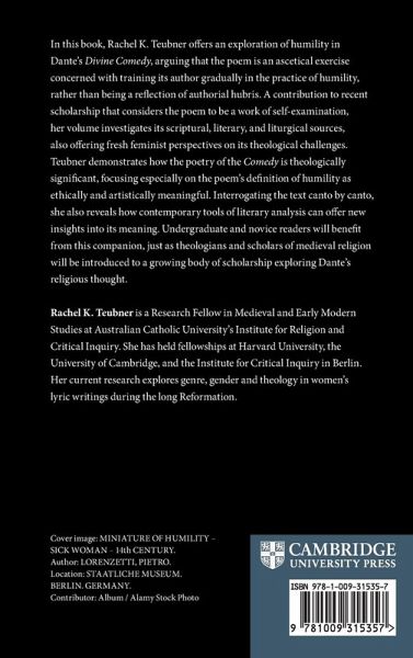 Examines humility as theologically central to the Comedy. Canto by canto, Teubner demonstrates the many means by which the poem's theology responds to contemporary readers' concerns. Readers will benefit richly from this gracefully written companion, which also introduces theologians to recent scholarship exploring Dante's religious thought.