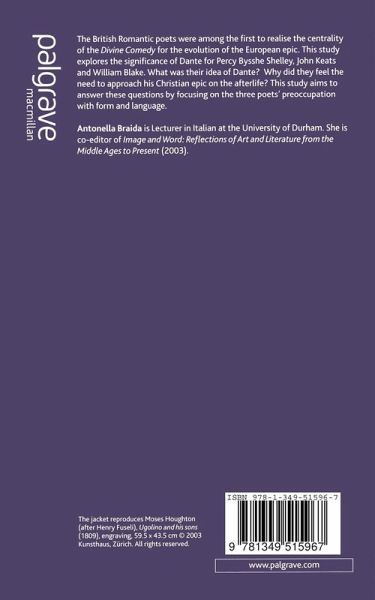 The British Romantic poets were among the first to realise the centrality of the Divine Comedy for the evolution of the European epic. This study explores the significance of Dante for Percy Bysshe Shelley, John Keats and William Blake. What was their idea of Dante? Why did they feel the need to approach his Christian epic on the afterlife? This study aims to answer these questions by focusing on the three poets' preoccupation with form and language.