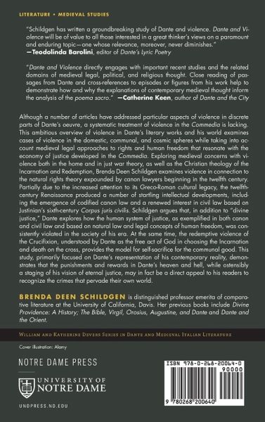 This study explores how Dante represents violence in the Comedy and reveals the connection between contemporary private and public violence and civic and canon law violations. Although a number of articles have addressed particular aspects of violence in discrete parts of Dante's oeuvre, a systematic treatment of violence in the Commedia is lacking. This ambitious overview of violence in Dante's literary works and his world examines cases of violence in the domestic, communal, and cosmic spheres while taking into account medieval legal approaches to rights and human freedom that resonate with the economy of justice developed in the Commedia. Exploring medieval concerns with violence both in the home and in just war theory, as well as the Christian theology of the Incarnation and Redemption, Brenda Deen Schildgen examines violence in connection to the natural rights theory expounded by canon lawyers beginning in the twelfth century. Partially due to the increased attention to its Greco-Roman cultural legacy, the twelfth-century Renaissance produced a number of startling intellectual developments, including the emergence of codified canon law and a renewed interest in civil law based on Justinian's sixth-century Corpus juris civilis. Schildgen argues that, in addition to "divine justice," Dante explores how the human system of justice, as exemplified in both canon and civil law and based on natural law and legal concepts of human freedom, was consistently violated in the society of his era. At the same time, the redemptive violence of the Crucifixion, understood by Dante as the free act of God in choosing the Incarnation and death on the cross, provides the model for self-sacrifice for the communal good. This study, primarily focused on Dante's representation of his contemporary reality, demonstrates that the punishments and rewards in Dante's heaven and hell, while ostensibly a staging of his vision of eternal justice, may in fact be a direct appeal to his readers to recognize the crimes that pervade their own world. Dante and Violence will have a wide readership, including students and scholars of Dante, medieval culture, violence, and peace studies.