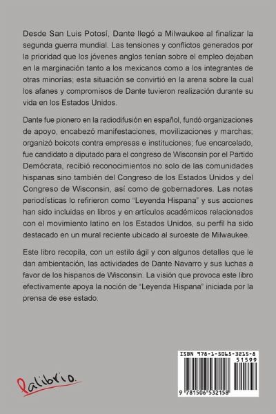 Desde San Luis Potosí, Dante llegó a Milwaukee al finalizar la segunda guerra mundial. Las tensiones y conflictos generados por la prioridad que los jóvenes anglos tenían sobre el empleo dejaban en la marginación tanto a los mexicanos como a los integrantes de otras minorías; esta situación se convirtió en la arena sobre la cual los afanes y compromisos de Dante tuvieron realización durante su vida en los Estados Unidos. Dante fue pionero en la radiodifusión en español, fundó organizaciones de apoyo, encabezó manifestaciones, movilizaciones y marchas; organizó boicots contra empresas e instituciones; fue encarcelado, fue candidato a diputado para el congreso de Wisconsin por el Partido Demócrata, recibió reconocimientos no solo de las comunidades hispanas sino también del Congreso de los Estados Unidos y del Congreso de Wisconsin, así como de gobernadores. Las notas periodísticas lo refirieron como "Leyenda Hispana" y sus acciones han sido incluidas en libros y en artículos académicos relacionados con el movimiento latino en los Estados Unidos, su perfil ha sido destacado en un mural reciente ubicado al suroeste de Milwaukee. Este libro recopila, con un estilo ágil y con algunos detalles que le dan ambientación, las actividades de Dante Navarro y sus luchas a favor de los hispanos de Wisconsin. La visión que provoca este libro efectivamente apoya la noción de "Leyenda Hispana" iniciada por la prensa de ese estado.