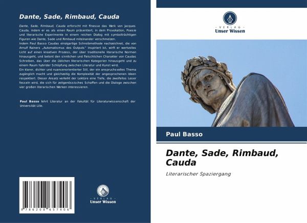 Dante, Sade, Rimbaud, Cauda erforscht mit Finesse das Werk von Jacques Cauda, indem er es als einen Raum präsentiert, in dem Provokation, Poesie und literarische Experimente in einem reichen Dialog mit symbolträchtigen Figuren wie Dante, Sade und Rimbaud miteinander verschmelzen.Indem Paul Basso Caudas einzigartige Schreibmethode nachzeichnet, die von Arnulf Rainers "Automatismus des Outputs" inspiriert ist, wirft er wertvolles Licht auf einen kreativen Prozess, der über traditionelle literarische Normen hinausgeht, und betont den sinnlichen und fleischlichen Charakter von Caudas Schreiben, das über die üblichen literarischen Kategorien hinausgeht und zu einem Raum hybrider Schöpfung zwischen Literatur und Kunst wird.Ein klarer, dichter und nuancenorientierter Stil, der ein anspruchsvolles Thema zugänglich macht und gleichzeitig die Komplexität der angesprochenen Ideen respektiert. Dieser Ansatz verleiht der Lektüre eine Tiefe, die zweifellos Leser fesseln wird, die sich für zeitgenössisches Schaffen und die Dialoge zwischen vier großen literarischen Werken interessieren.