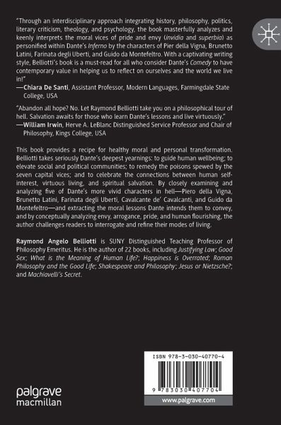 This book provides a recipe for healthy moral and personal transformation. Belliotti takes seriously Dante's deepest yearnings: to guide human well-being; to elevate social and political communities; to remedy the poisons spewed by the seven capital vices; and to celebrate the connections between human self-interest, virtuous living, and spiritual salvation. By closely examining and analyzing five of Dante's more vivid characters in hell-Piero della Vigna, Brunetto Latini, Farinata degli Uberti, Cavalcante de' Cavalcanti, and Guido da Montefeltro-and extracting the moral lessons Dante intends them to convey, and by conceptually analyzing envy, arrogance, pride, and human flourishing, the author challenges readers to interrogate and refine their modes of living.