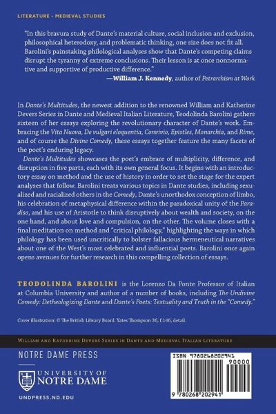 A critical addition to Dante studies that illuminates the poet's disruptive impact within Italian culture and foregrounds Barolini's marked contribution to the field. In Dante's Multitudes, the newest addition to the renowned William and Katherine Devers Series in Dante and Medieval Italian Literature, Teodolinda Barolini gathers sixteen of her essays exploring the revolutionary character of Dante's work. Embracing the Vita Nuova, De vulgari eloquentia, Convivio, Epistles, Monarchia, and Rime, and of course the Divine Comedy, these essays together feature the many facets of the poet's enduring legacy. Dante's Multitudes showcases the poet's embrace of multiplicity, difference, and disruption in five parts, each with its own general focus. It begins with an introductory essay on method and the use of history in order to set the stage for the expert analyses that follow. Barolini treats various topics in Dante studies, including sexualized and racialized others in the Comedy, Dante's unorthodox conception of limbo, his celebration of metaphysical difference within the paradoxical unity of the Paradiso, and his use of Aristotle to think disruptively about wealth and society, on the one hand, and about love and compulsion, on the other. The volume closes with a final meditation on method and "critical philology," highlighting the ways in which philology has been used uncritically to bolster fallacious hermeneutical narratives about one of the West's most celebrated and influential poets. Barolini once again opens avenues for further research in this compelling collection of essays. This volume will be of interest to scholars in Dante studies, Italian studies, and medieval and Renaissance literature more broadly.
