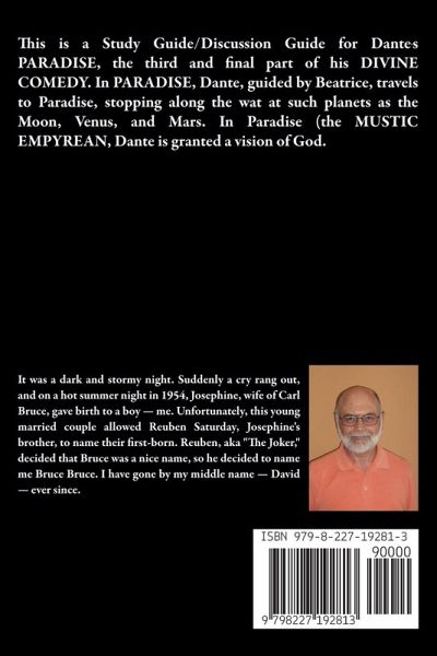 This is a Study Guide/Discussion Guide for Dante's PARADISE, the third and final part of his DIVINE COMEDY. In PARADISE, Dante, guided by Beatrice, travels to Paradise, stopping along the wat at such planets as the Moon, Venus, and Mars. In Paradise (the MYSTIC EMPYREAN, Dante is granted a vision of God.