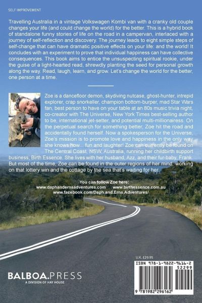 Travelling Australia in a vintage Volkswagen Kombi van with a cranky old couple changes your life (and could change the world) for the better. This is a hybrid book of standalone funny stories of life on the road in a campervan, interlaced with a journey of self-reflection and discovery. The journey leads to eight simple steps of self-change that can have dramatic positive effects on your life: and the world! It concludes with an experiment to prove that individual happiness can have collective consequences. This book aims to entice the unsuspecting spiritual rookie, under the guise of a light-hearted read, shrewdly planting the seed for personal growth along the way. Read, laugh, learn, and grow. Let's change the world for the better, one person at a time.